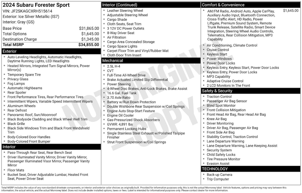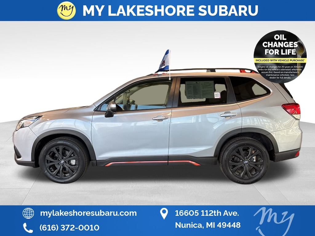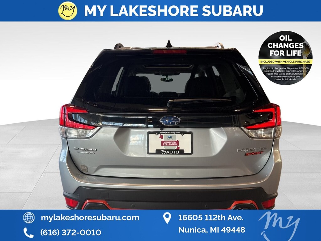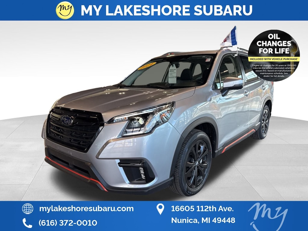 Forester Sport, Ice Silver Metallic, *ALL WHEEL DRIVE*, *APPLE CARPLAY & ANDROID AUTO*, *EYESIGHT Driver Assist*, *LANE DEPARTURE WARNING*, *LEATHER HEATED POWER SEATS*, *OIL CHANGES for LIFE*, *PANORAMIC MOONROOF*, *PREMIUM SOUND*, 8" Audio w/harman/kardon & RAB & Power Rear Gate, harman/kardon 9-Speaker Audio System, Power Rear Gate, Radio: Subaru STARLINK 8.0" Multimedia Plus System, Reverse Automatic Braking System (RAB). Certified. Ice Silver Metallic 2024 Subaru Forester Sport AWD Lineartronic CVT 2.5L 4-Cylinder DOHC 16V