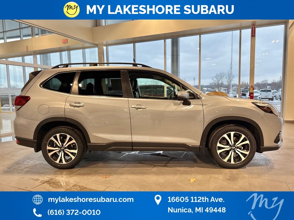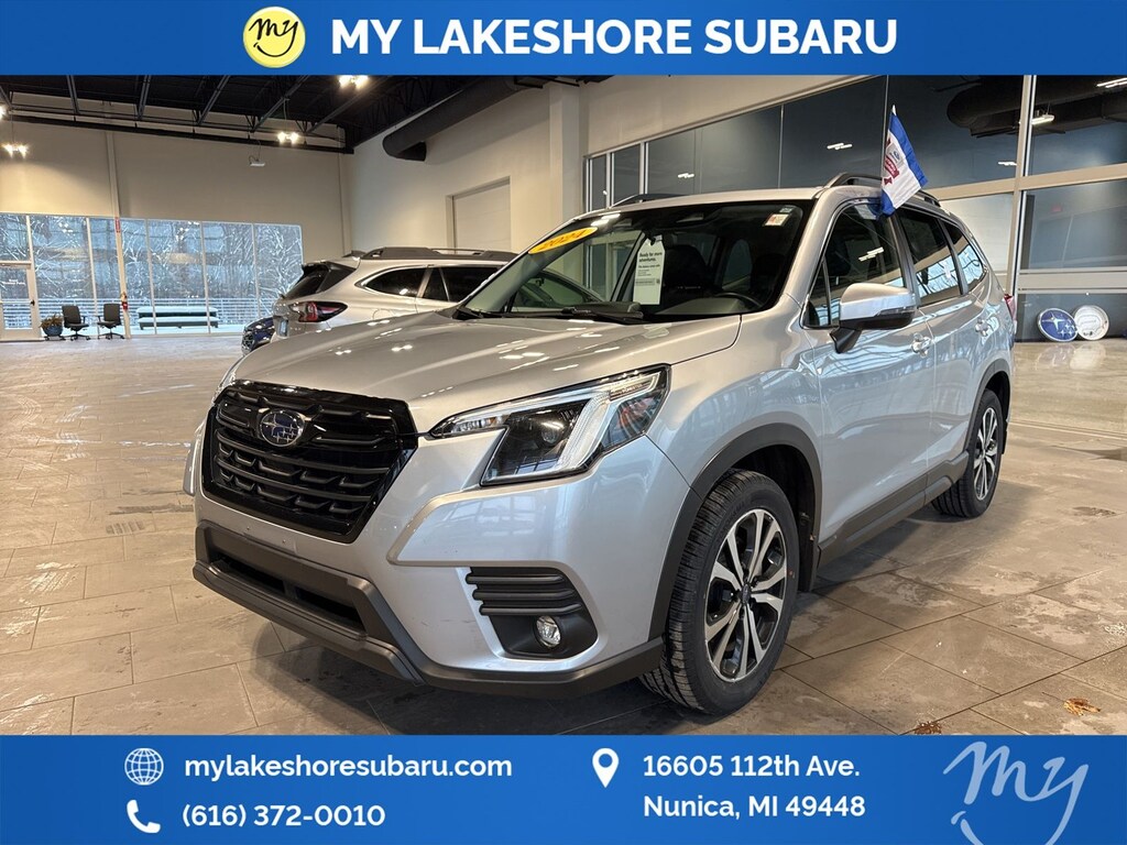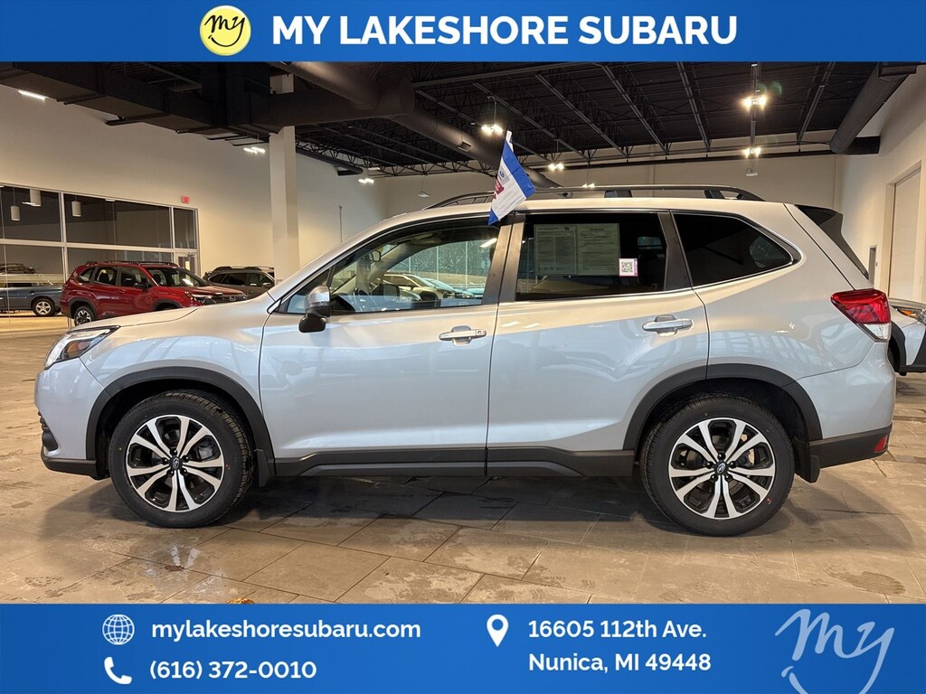 Forester Limited, Ice Silver Metallic, *ALL WHEEL DRIVE*, *APPLE CARPLAY & ANDROID AUTO*, *EYESIGHT Driver Assist*, *LANE DEPARTURE WARNING*, *LEATHER HEATED POWER SEATS*, *OIL CHANGES for LIFE*, *PANORAMIC MOONROOF*. Certified. Ice Silver Metallic 2024 Subaru Forester Limited AWD Lineartronic CVT 2.5L 4-Cylinder DOHC 16V