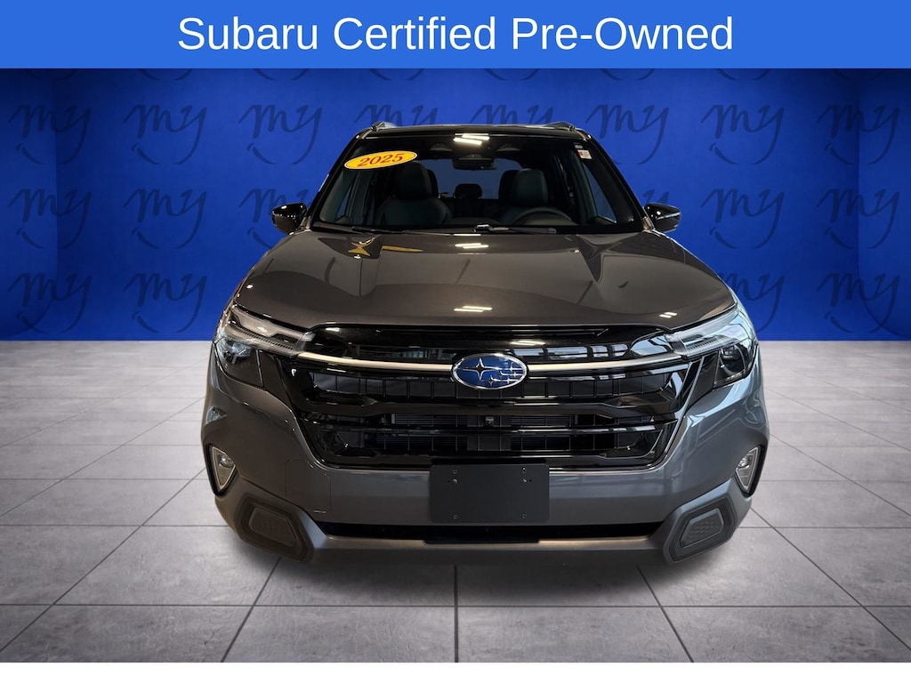 Forester Hybrid Touring, Magnetite Gray Metallic/Crystal Black Silica, *ALL WHEEL DRIVE*, *APPLE CARPLAY & ANDROID AUTO*, *BACKUP CAMERA*, *BLIND SPOT ALERT*, *BLIND SPOT MONITORING*, *EYESIGHT Driver Assist*, *HEATED REAR Seats*, *HEATED STEERING WHEEL*, *LANE DEPARTURE WARNING*, *LEATHER HEATED POWER SEATS*, *OIL CHANGES for LIFE*, *PANORAMIC MOONROOF*, All-Weather Floor Liners, Auto-Dimming Exterior Mirror with Approach Light, Body Side Molding - Crystal White Pearl, LED Upgrade, Rear Bumper Cover, Splash Guards, Touring Package. Certified. Magnetite Gray Metallic/Crystal Black Silica 2025 Subaru Forester Hybrid Touring AWD Lineartronic CVT 2.5L 4-Cylinder DOHC 16V
