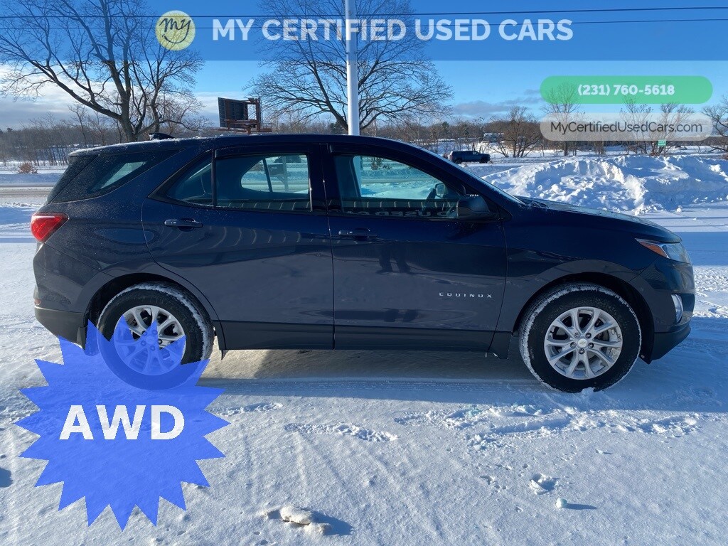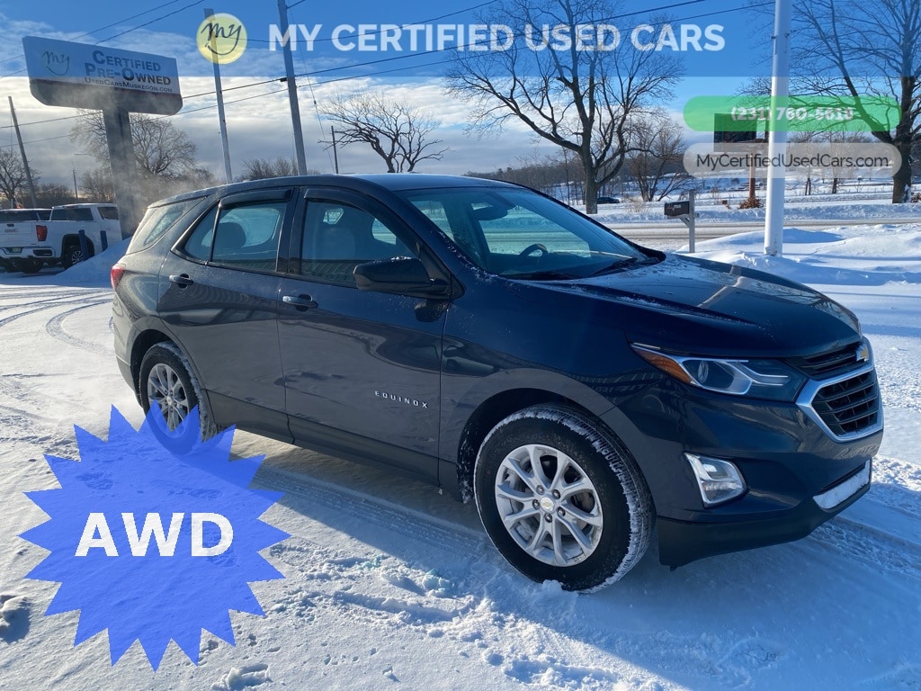 *SUPER BUY* ***2018 CHEVROLET EQUINOX LS AWD***, *APPLE CARPLAY & ANDROID AUTO*, *CRUISE CONTROL*, *HANDSFREE BLUETOOTH*, *REARVIEW CAMERA*, Exterior Parking Camera Rear, Preferred Equipment Group 1LS. MY Certified Used Cars of Muskegon is your #1 choice in Michigan to get the BEST PRICE on used vehicles and BEST value for your trade. The MY Certified Used Cars team is ready to provide you with a world-class experience, ensuring that you find the perfect vehicle that fits all your needs. Every vehicle has been through a full safety inspection completed by certified technicians and fully detailed. We sell many makes and models, Pre-Owned Vehicles with years from 2025-2024-2023-2022-2021-2020-2019-2018-2017-2016-2015-2014-2013-2012-2011-2010-2009-2008-2007 and all makes Audi, BMW, Chevrolet, Toyota, Volkswagen, Kia, Hyundai, Mercedes, Dodge, Chrysler, Jeep, Ram, Lincoln, Honda, Subaru, and many models like Bronco, Bronco Sport, Edge, Escapes, Expedition, Explorer, Fusions, Focus, Flex, F-150 Series, F-250, F-350, Super Duty Diesel Trucks, Maverick, Mustang MACH-E, Mustang, Ranger, Transit, Wrangler, Grand Cherokee, Grand Cherokee L, Wagoneer, Gladiator, Grand Caravan, RAM, RAM HEMI, and more. Take advantage of our VIP experience by calling 231-760-5618 to schedule a test drive. Read our customer reviews at www.mycertifiedusedcars.com/testimonials or view our entire selection of preowned vehicles at www.mycertifiedusedcars.com, or stop by today, located at 3692 Airline Rd. Muskegon, MI 49444. New Price! Storm Blue Metallic 2018 Chevrolet Equinox LS AWD 6-Speed Automatic Electronic with Overdrive 1.5L DOHC