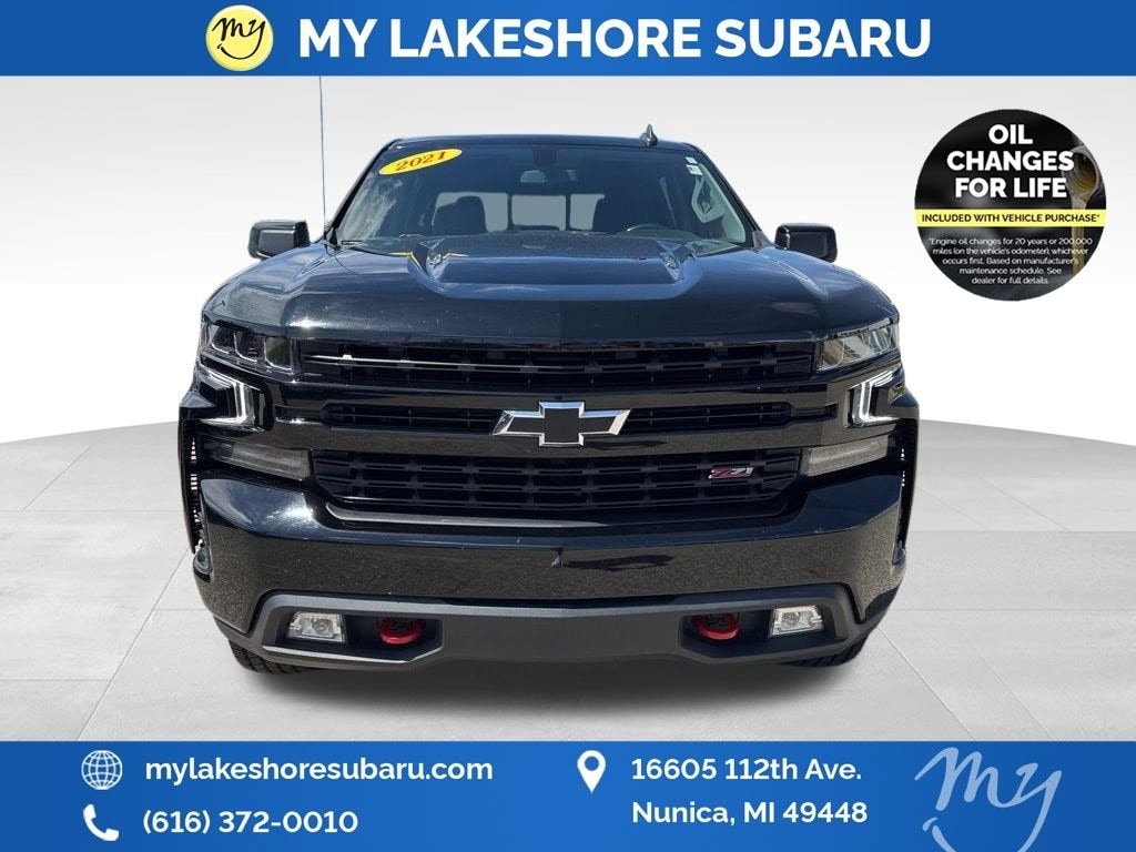 Silverado 1500 LT Trail Boss, 10-Speed Automatic, 4WD, *APPLE CARPLAY & ANDROID AUTO*, *HEATED SEATS*, *HEATED STEERING WHEEL*, *OIL CHANGES for LIFE*, 120-Volt Bed Mounted Power Outlet, 120-Volt Instrument Panel Power Outlet, 2 USB Ports, Bed Protection Package, Chevytec Spray-On Black Bedliner, Convenience Package II, HD Radio, HD Rear Vision Camera, Power Sliding Rear Window w/Rear Defogger, Premium Bose 7-Speaker Sound System, Radio: Chevrolet Infotainment 3 Plus System, Rear Wheelhouse Liners, SiriusXM w/360L, Universal Home Remote, Wireless Phone Projection. Black 2021 Chevrolet Silverado 1500 LT Trail Boss 4WD 10-Speed Automatic EcoTec3 6.2L V8
