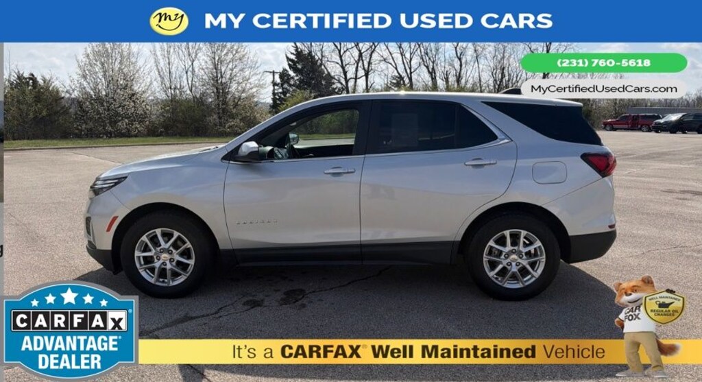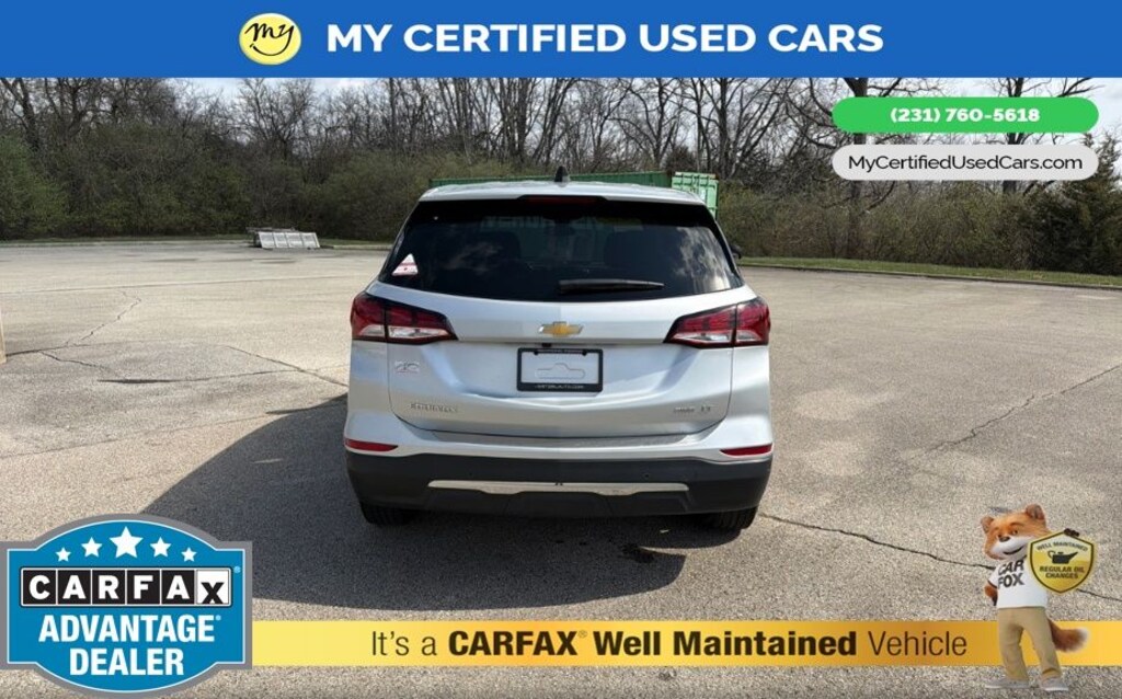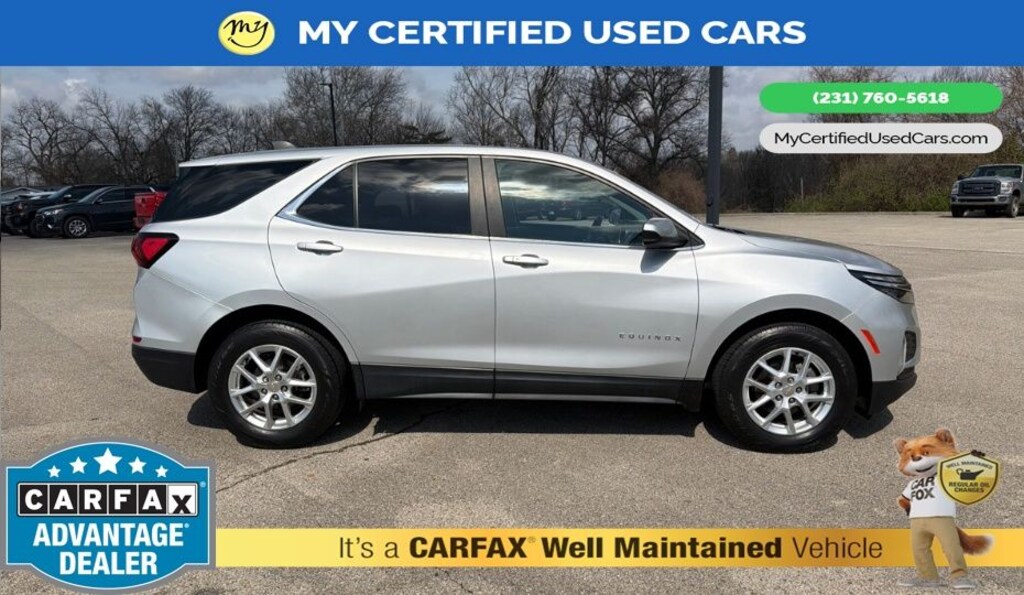 *VERY CLEAN* ***2022 CHEVROLET EQUINOX LT AWD***, *SUPER BUY* *REMOTE START* *APPLE CARPLAY & ANDROID AUTO*, *BACKUP SENSORS*, *BLIND SPOT MONITORING SYSTEM*, *LANE DEPARTURE WARNING*, *NAVIGATION*, *REARVIEW CAMERA*, 3-Spoke Leather-Wrapped Steering Wheel, Driver Convenience Package, Dual Zone Automatic Climate Control, Heated Driver & Front Passenger Seats, Preferred Equipment Group 2FL, Rear Power Liftgate, Remote Start. MY Certified Used Cars of Muskegon is your #1 choice in Michigan to get the BEST PRICE on used vehicles and BEST value for your trade. The MY Certified Used Cars team is ready to provide you with a world-class experience, ensuring that you find the perfect vehicle that fits all your needs. Every vehicle has been through a full safety inspection completed by certified technicians and fully detailed. We sell many makes and models, Pre-Owned Vehicles with years from 2025-2024-2023-2022-2021-2020-2019-2018-2017-2016-2015-2014-2013-2012-2011-2010-2009-2008-2007 and all makes Audi, BMW, Chevrolet, Nissan, Toyota, Volkswagen, Kia, Hyundai, Mercedes, Dodge, Chrysler, Jeep, Ram, Lincoln, Honda, Subaru, and many models like Bronco, Bronco Sport, Edge, Escapes, Expedition, Explorer, Fusions, Focus, Flex, F-150 Series, F-250, F-350, Super Duty Diesel Trucks, Maverick, Altima, RAV4, 4 Runner, Mustang, Ranger, Transit, Wrangler, Grand Cherokee, Grand Cherokee L, Wagoneer, Gladiator, Grand Caravan, RAM, RAM HEMI, and more. Take advantage of our VIP experience by calling 231-760-5618 to schedule a test drive. Read our customer reviews at www.mycertifiedusedcars.com/testimonials or view our entire selection of preowned vehicles at www.mycertifiedusedcars.com, or stop by today, located at 3692 Airline Rd. Muskegon, MI 49444. Silver Ice Metallic 2022 Chevrolet Equinox LT AWD 6-Speed Automatic Electronic with Overdrive 1.5L DOHC