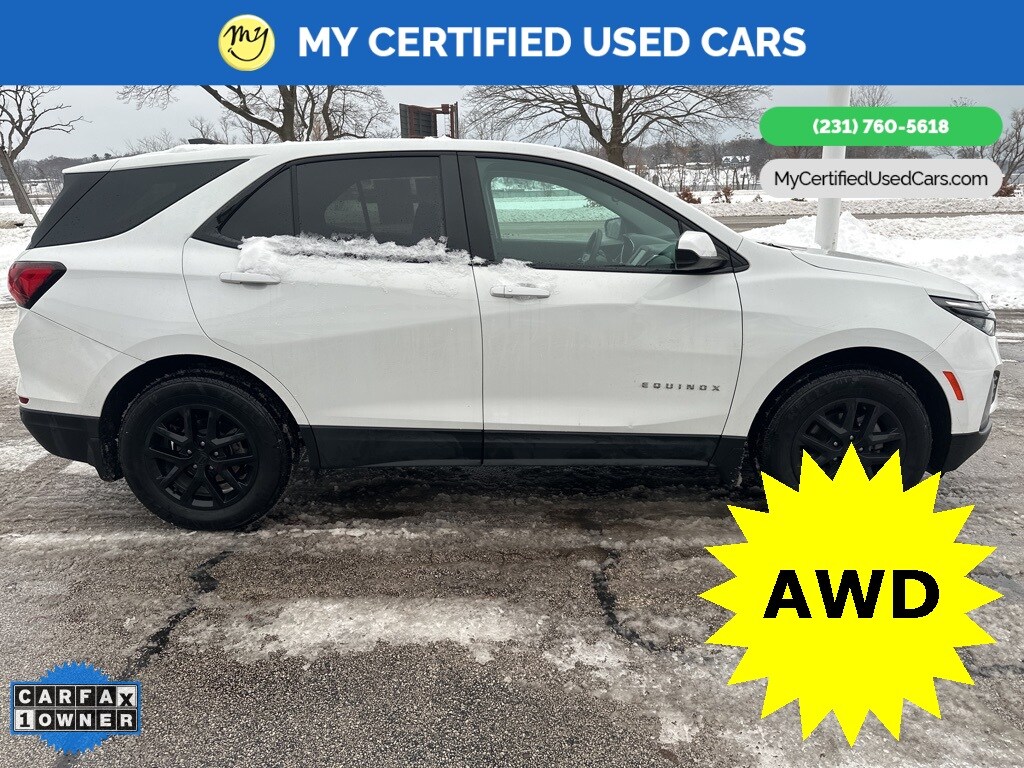 *VERY CLEAN* ***2023 CHEVROLET EQUINOX***, **AUTO HIGH BEAMS**, **AUTOMATIC EMERGENCY BRAKING**, **FORWARD COLLISION ALERT**, **FRONT AND REAR PARK ASSIST**, *HANDSFREE BLUETOOTH*, *LANE DEPARTURE WARNING*, *REARVIEW CAMERA*, *SUPER BUY*, *VERY CLEAN*, All-Weather Floor Liners (LPO), Auto High-beam Headlights, Floor Liner Package (LPO), Integrated Cargo Liner (LPO), Lane Change Alert w/Side Blind Zone Alert, Preferred Equipment Group 2FL, Rear Cross Traffic Alert, Side Blind Zone & Rear Cross Traffic, Wireless Apple CarPlay/Wireless Android Auto. MY Certified Used Cars of Muskegon is your #1 choice in Michigan to get the BEST PRICE on used vehicles and BEST value for your trade. The MY Certified Used Cars team is ready to provide you with a world-class experience, ensuring that you find the perfect vehicle that fits all your needs. Every vehicle has been through a full safety inspection completed by certified technicians and fully detailed. We sell many makes and models, Pre-Owned Vehicles with years from 2025-2024-2023-2022-2021-2020-2019-2018-2017-2016-2015-2014-2013-2012-2011-2010-2009-2008-2007 and all makes Audi, BMW, Chevrolet, Toyota, Volkswagen, Kia, Hyundai, Mercedes, Dodge, Chrysler, Jeep, Ram, Lincoln, Honda, Subaru, and many models like Bronco, Bronco Sport, Edge, Escapes, Expedition, Explorer, Fusions, Focus, Flex, F-150 Series, F-250, F-350, Super Duty Diesel Trucks, Maverick, Mustang MACH-E, Mustang, Ranger, Transit, Wrangler, Grand Cherokee, Grand Cherokee L, Wagoneer, Gladiator, Grand Caravan, RAM, RAM HEMI, and more. Take advantage of our VIP experience by calling 231-760-5618 to schedule a test drive. Read our customer reviews at www.mycertifiedusedcars.com/testimonials or view our entire selection of preowned vehicles at www.mycertifiedusedcars.com, or stop by today, located at 3692 Airline Rd. Muskegon, MI 49444. CARFAX One-Owner. Summit White 2023 Chevrolet Equinox LT AWD 6-Speed Automatic Electronic with Overdrive 1.5L DOHC Clean CARFAX.