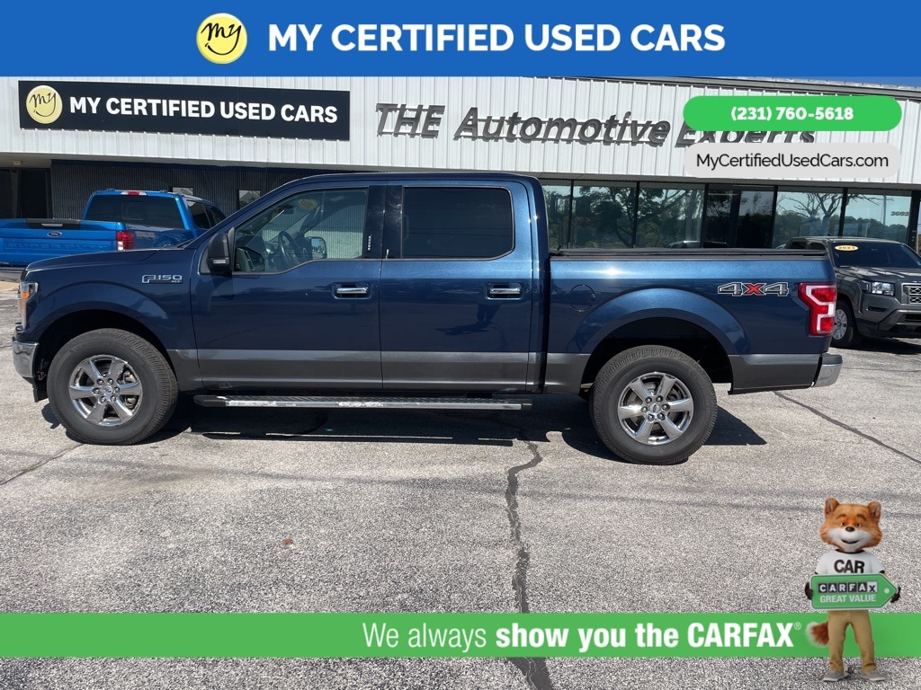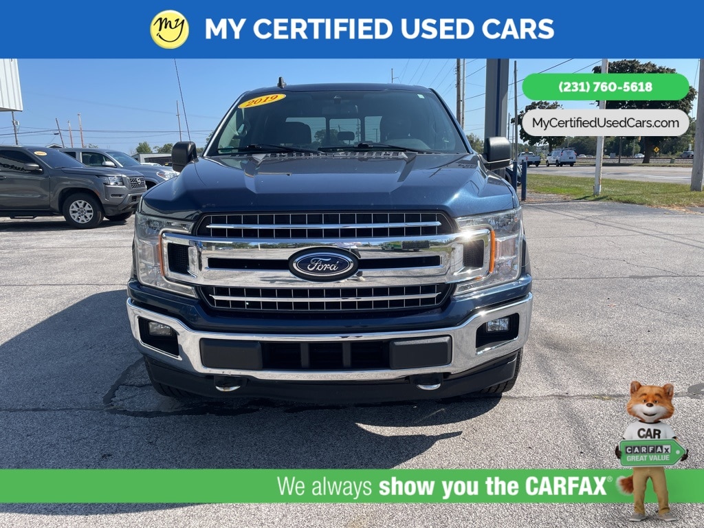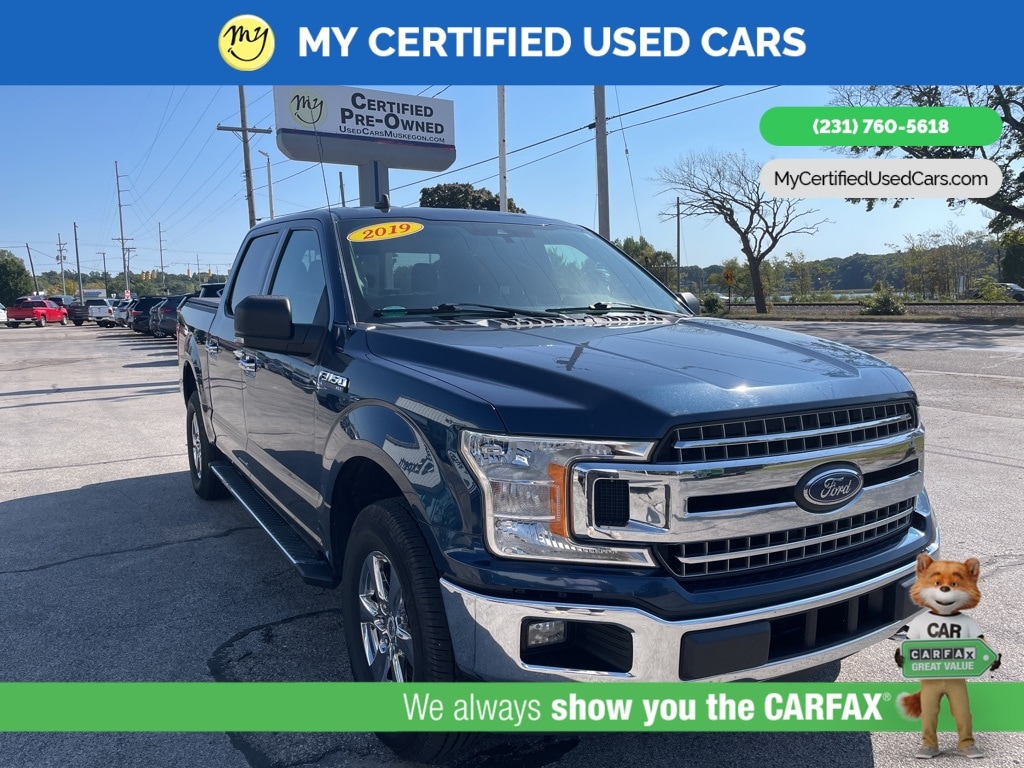 ***2019 FORD F-150 XLT 4WD***, *SUPER BUY*, *VERY CLEAN*, **REMOTE START** **EQUIPMENT GROUP 302A** **CHROME APPEARANCE PACKAGE** 3.5L ECOBOOST** 3.55 ELECTRONIC LOCK RR AXLE** *GVWR: 7,000 lbs Payload Package* *Max Trailer Tow Package* 4D SuperCrew, 3.5L V6 EcoBoost, 4WD, *APPLE CARPLAY & ANDROID AUTO*, *HEATED SEATS*, *NAVIGATION*, *REMOTE START*, 10-Way Power Driver & Passenger Seats, 2-Bar Style Grille w/Chrome 2 Minor Bars, 4.2" Productivity Screen in Instrument Cluster, ABS brakes, Alloy wheels, Auto-Dimming Rear-View Mirror, Chrome Door & Tailgate Handles w/Body-Color Bezel, Chrome Step Bars, Class IV Trailer Hitch Receiver, Cloth 40/20/40 Front Seat, Compass, Electronic Stability Control, Engine Oil Cooler, Equipment Group 302A Luxury, Extended Range 36 Gallon Fuel Tank, Fixed Backlight w/Privacy Glass, Heated Front Seats, Illuminated entry, Integrated Trailer Brake Controller, Leather-Wrapped Steering Wheel, Low tire pressure warning, Max Trailer Tow Package, Power Glass Heated Sideview Mirrors, Power-Adjustable Pedals, Pro Trailer Backup Assist, Rear Under-Seat Storage, Rear Window Defroster, Remote keyless entry, Remote Start System, Single-Tip Chrome Exhaust, SiriusXM Radio, Traction control, Upgraded Front Stabilizer Bar, Wheels: 18" Chrome-Like PVD, XLT Chrome Appearance Package. MY Certified Used Cars of Muskegon is your #1 choice in Michigan to get the BEST PRICE on used vehicles and BEST value for your trade. The MY Certified Used Cars team is ready to provide you with a world-class experience, ensuring that you find the perfect vehicle that fits all your needs. Every vehicle has been through a full safety inspection completed by certified technicians and fully detailed. We sell many makes and models, Pre-Owned Vehicles with years from 2025-2024-2023-2022-2021-2020-2019-2018-2017-2016-2015-2014-2013-2012-2011-2010-2009-2008-2007 and all makes Audi, BMW, Chevrolet, Toyota, Volkswagen, Kia, Hyundai, Mercedes, Dodge, Chrysler, Jeep, Ram, Lincoln, Honda, Subaru, and many models like Bronco, Bronco Sport, Edge, Escapes, Expedition, Explorer, Fusions, Focus, Flex, F-150 Series, F-250, F-350, Super Duty Diesel Trucks, Maverick, Mustang MACH-E, Mustang, Ranger, Transit, Wrangler, Grand Cherokee, Grand Cherokee L, Wagoneer, Gladiator, Grand Caravan, RAM, RAM HEMI, and more. Take advantage of our VIP experience by calling 231-760-5618 to schedule a test drive. Read our customer reviews at www.mycertifiedusedcars.com/testimonials or view our entire selection of preowned vehicles at www.mycertifiedusedcars.com, or stop by today, located at 3692 Airline Rd. Muskegon, MI 49444. CARFAX One-Owner. Blue 2019 Ford F-150 XLT 4WD 10-Speed Automatic 3.5L V6 EcoBoost