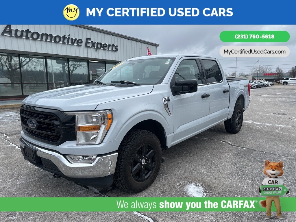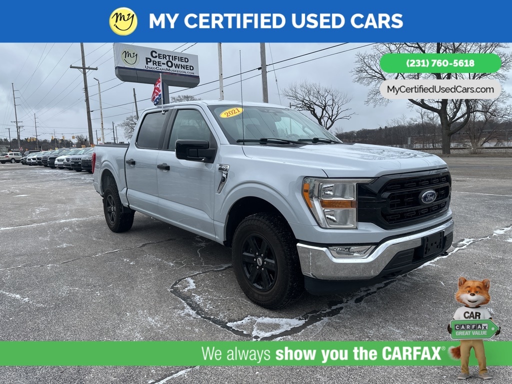 *FULLY SERVICED* ***2021 FORD F-150 XLT 4WD***, ***3.5L ECOBOOST*** *NEW TIRES* *VERY CLEAN* , *BACKUP SENSORS*, *LANE DEPARTURE WARNING*, *REARVIEW CAMERA*, *ADAPTIVE CRUISE*, *APPLE CARPLAY & ANDROID AUTO* 3.31 Axle Ratio, GVWR: 7,050 lbs Payload Package 8-Way Power Driver's Seat w/Power Lumbar, 8" Productivity Screen in Instrument Cluster, Auto-Dimming Rear-View Mirror, Class IV Trailer Hitch Receiver, Dual Zone Automatic Temperature Control, Equipment Group 301A Mid, Integrated Trailer Brake Controller, Leather-Wrapped Steering Wheel, Power Glass Heated Sideview Mirrors, Pro Trailer Backup Assist, Radio: AM/FM SiriusXM w/360L, Rear Under-Seat Storage, SecuriCode Drivers Side Keyless-Entry Keypad, SYNC 4 w/Enhanced Voice Recognition, Trailer Tow Package. MY Certified Used Cars of Muskegon is your #1 choice in Michigan to get the BEST PRICE on used vehicles and BEST value for your trade. The MY Certified Used Cars team is ready to provide you with a world-class experience, ensuring that you find the perfect vehicle that fits all your needs. Every vehicle has been through a full safety inspection completed by certified technicians and fully detailed. We sell many makes and models, Pre-Owned Vehicles with years from 2025-2024-2023-2022-2021-2020-2019-2018-2017-2016-2015-2014-2013-2012-2011-2010-2009-2008-2007 and all makes Audi, BMW, Chevrolet, Toyota, Volkswagen, Kia, Hyundai, Mercedes, Dodge, Chrysler, Jeep, Ram, Lincoln, Honda, Subaru, and many models like Bronco, Bronco Sport, Edge, Escapes, Expedition, Explorer, Fusions, Focus, Flex, F-150 Series, F-250, F-350, Super Duty Diesel Trucks, Maverick, Mustang MACH-E, Mustang, Ranger, Transit, Wrangler, Grand Cherokee, Grand Cherokee L, Wagoneer, Gladiator, Grand Caravan, RAM, RAM HEMI, and more. Take advantage of our VIP experience by calling 231-760-5618 to schedule a test drive. Read our customer reviews at www.mycertifiedusedcars.com/testimonials or view our entire selection of preowned vehicles at www.mycertifiedusedcars.com, or stop by today, located at 3692 Airline Rd. Muskegon, MI 49444. White Metallic 2021 Ford F-150 XLT 4WD 10-Speed Automatic 3.5L V6 EcoBoost