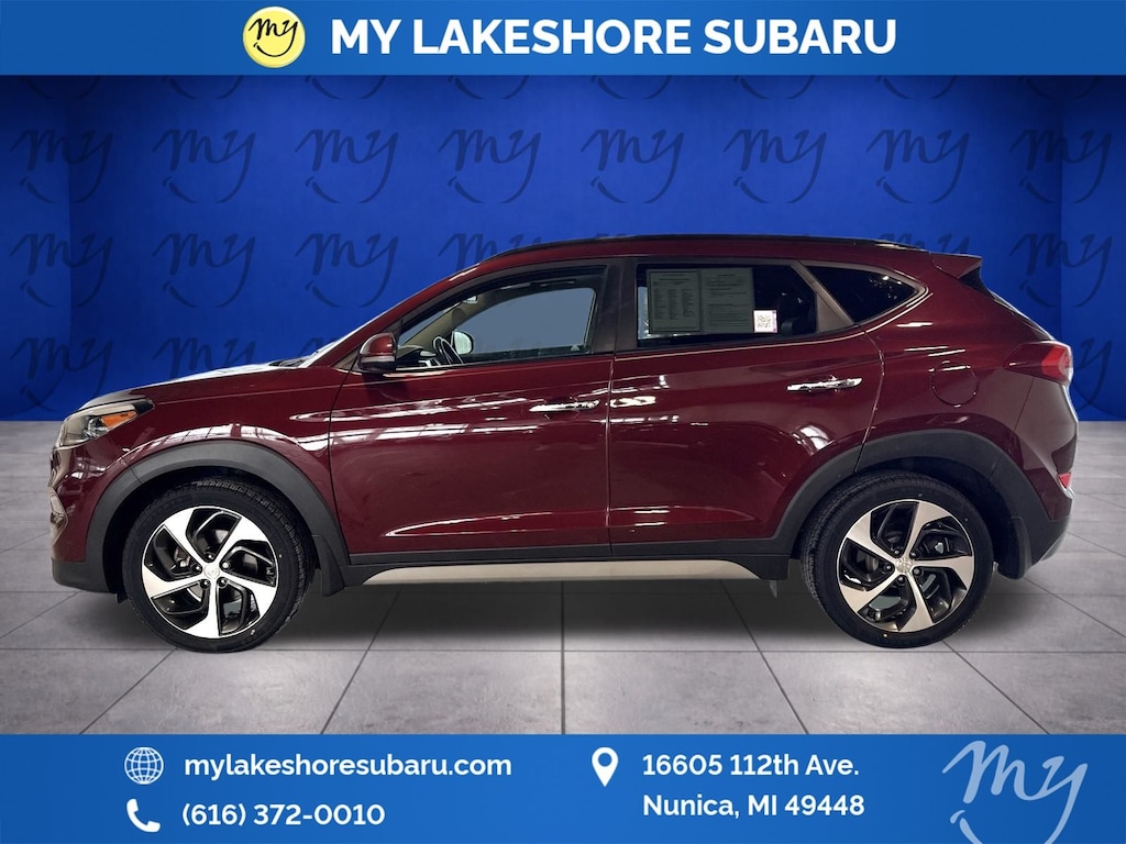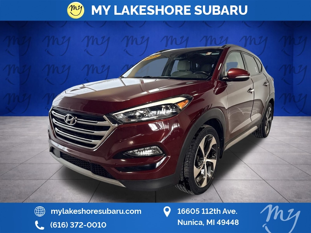 Tucson Limited, Ruby Wine, *APPLE CARPLAY & ANDROID AUTO*, *HEATED REAR Seats*, *LANE DEPARTURE WARNING*, *LEATHER HEATED POWER SEATS*, *LOCAL TRADE*, *MOONROOF*. Ruby Wine 2018 Hyundai Tucson Limited FWD 7-Speed Automatic 1.6L I4 DGI Turbocharged DOHC 16V ULEV II 175hp