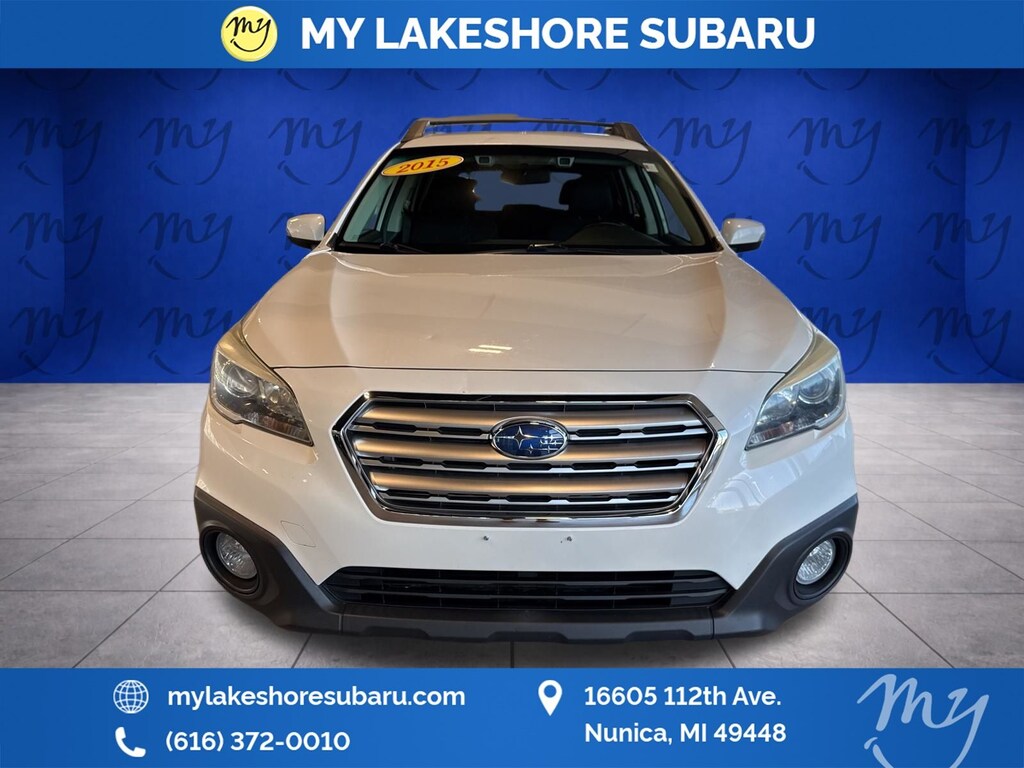 Outback 2.5i Premium, Crystal White Pearl, *ALL WHEEL DRIVE*, *BACKUP CAMERA*, *BLIND SPOT MONITORING*, *EYESIGHT Driver Assist*, *HEATED SEATS*, *LANE DEPARTURE WARNING*, *LOCAL TRADE*, EyeSight & Blind Spot Detection & Power Rear Gate, Power Rr Gate w/ Automatic Close & Height Memory. Crystal White Pearl 2015 Subaru Outback 2.5i Premium AWD CVT Lineartronic 2.5L 4-Cylinder DOHC 16V