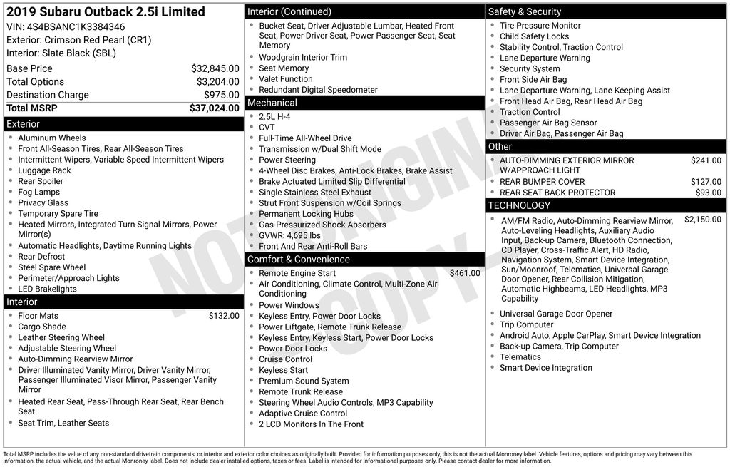 Recent Arrival! Crimson Red Pearl 2019 Subaru Outback 2.5i 2.5L 4-Cylinder DOHC 16V AWD