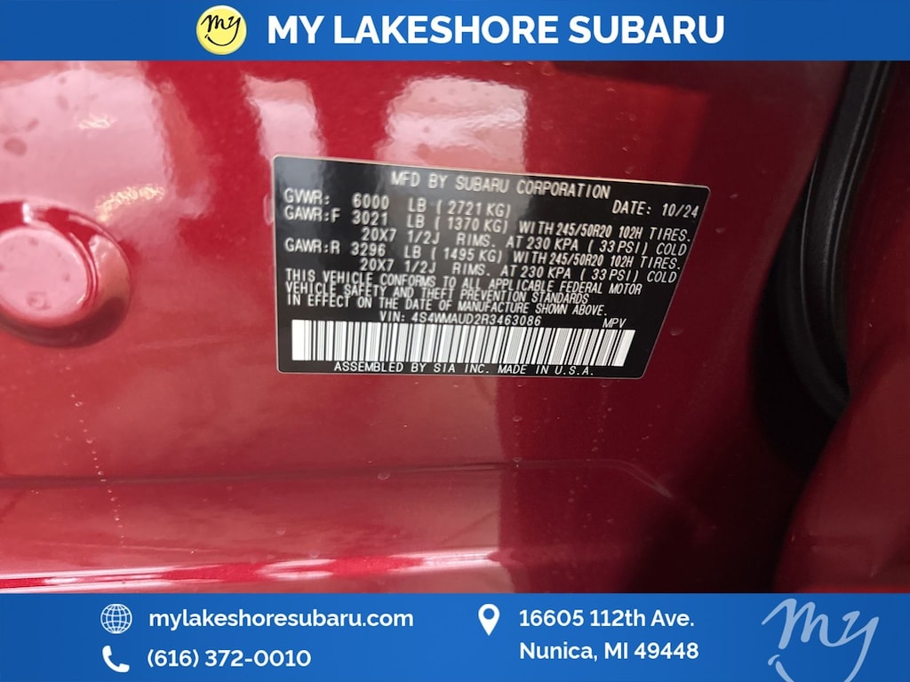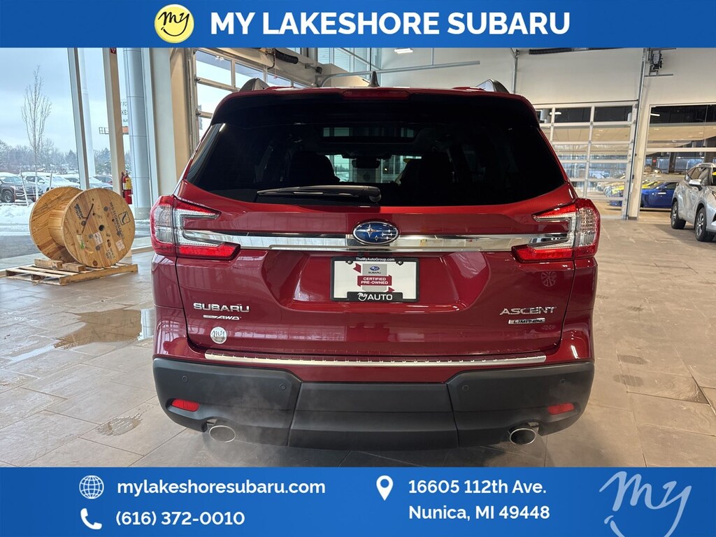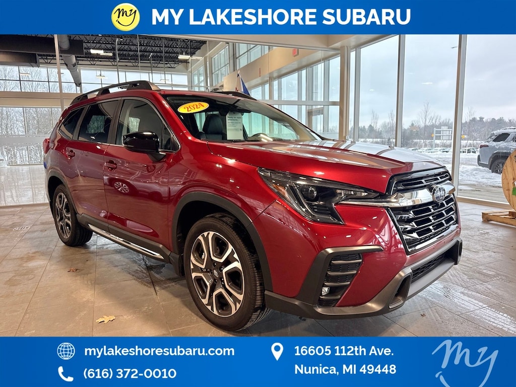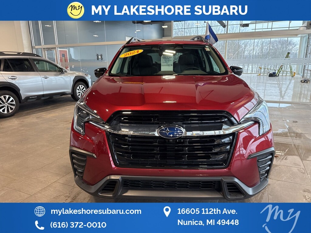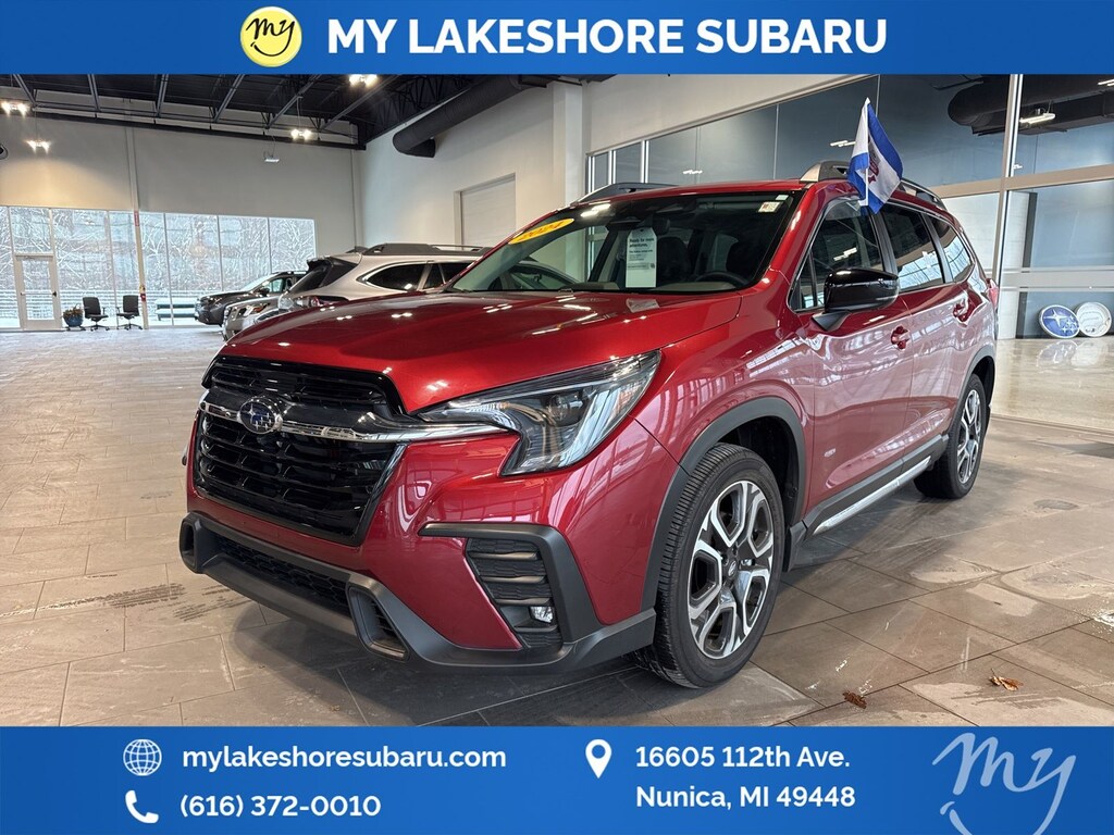 Ascent Limited, Crimson Red Pearl, *ALL WHEEL DRIVE*, *APPLE CARPLAY & ANDROID AUTO*, *EYESIGHT Driver Assist*, *LANE DEPARTURE WARNING*, *LEATHER HEATED POWER SEATS*, *OIL CHANGES for LIFE*, *PANORAMIC MOONROOF*, *REAR BUCKET Seats*, *REARVIEW CAMERA*, Cabin Connect, Crystal Black Power-Folding Exterior Power Mirrors, Panoramic Power Moonroof w/UV/Drk Tint Dual Glass, Radio: Subaru STARLINK 11.6" Multimedia Nav System, Retractable Cargo Area Cover, Surround View Monitor System, Technology Package. Certified. Crimson Red Pearl 2024 Subaru Ascent Limited AWD Lineartronic CVT 2.4L 4-Cylinder DOHC 16V