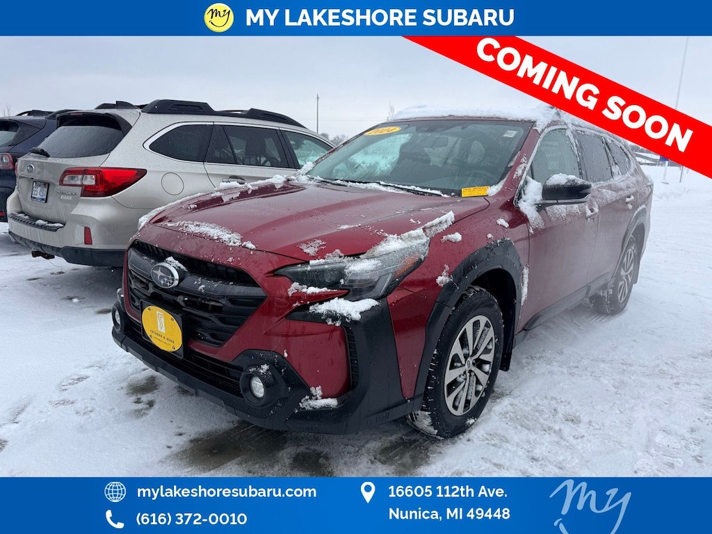 Outback Premium, Crimson Red Pearl, *ALL WHEEL DRIVE*, *APPLE CARPLAY & ANDROID AUTO*, *EYESIGHT Driver Assist*, *HEATED SEATS*, *LANE DEPARTURE WARNING*, *OIL CHANGES for LIFE*. Certified. Crimson Red Pearl 2024 Subaru Outback Premium AWD CVT Lineartronic 2.5L 4-Cylinder DOHC 16V