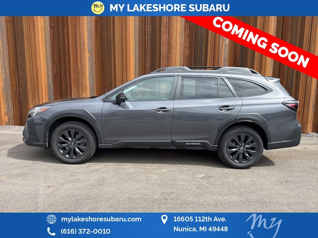 Outback Onyx Edition XT, Magnetite Gray Metallic, *ALL WHEEL DRIVE*, *APPLE CARPLAY & ANDROID AUTO*, *BACKUP CAMERA*, *BLIND SPOT MONITORING*, *HEATED REAR Seats*, *HEATED SEATS*, *HEATED STEERING WHEEL*, *LANE DEPARTURE WARNING*, *LOCAL TRADE*, *MOONROOF*, *OIL CHANGES for LIFE*. Certified. Magnetite Gray Metallic 2024 Subaru Outback Onyx Edition XT AWD CVT Lineartronic 2.4L DOHC