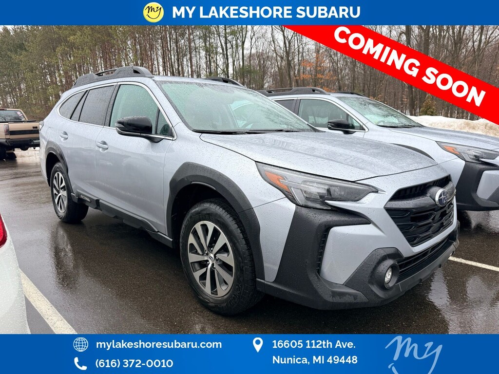 Outback Premium, Ice Silver Metallic, *ALL WHEEL DRIVE*, *APPLE CARPLAY & ANDROID AUTO*, *BACKUP CAMERA*, *EYESIGHT Driver Assist*, *HEATED SEATS*, *LANE DEPARTURE WARNING*, *MOONROOF*, *OIL CHANGES for LIFE*, Blind Spot Detection (BSD), BSD & RCTA & Keyless Access & Push Button Start, Hands-Free Power Rear Gate, Keyless Access w/Push Button Start, Power Moonroof, Radio: Subaru 11.6" Multimedia System w/Navigation, Rear Cross Traffic Alert (RCTA). Certified. Ice Silver Metallic 2025 Subaru Outback Premium AWD CVT Lineartronic 2.5L 4-Cylinder DOHC 16V
