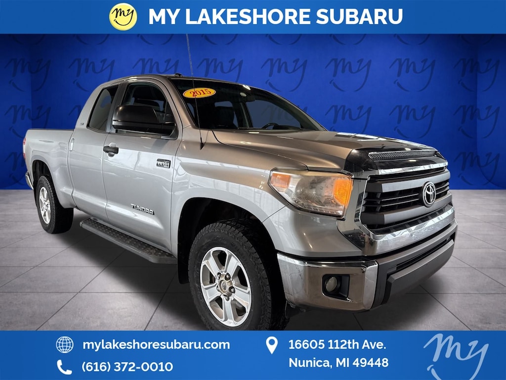 i-Force 5.7L V8 DOHC 32V LEV, 4WD, Silver Sky Metallic, *LOCAL TRADE*, *TOW PACKAGE*, *Trailer TOW Package*, ABS brakes, Clear Front Fog & Driving Lights, Electronic Stability Control, Heated door mirrors, Illuminated entry, Illuminated Entry System, Low tire pressure warning, Rear Under Seat Storage Tray, Remote keyless entry, Running Boards, Sliding Rear Window w/Privacy Glass, SR5 Package, Traction control. Silver Sky Metallic 2015 Toyota Tundra SR5 4WD 6-Speed Automatic Electronic with Overdrive i-Force 5.7L V8 DOHC 32V LEV