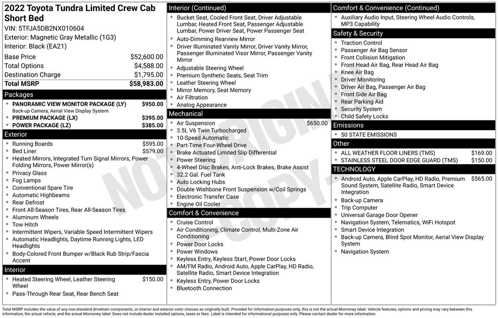 Gray 2022 Toyota Tundra Limited 3.4L V6 4WD