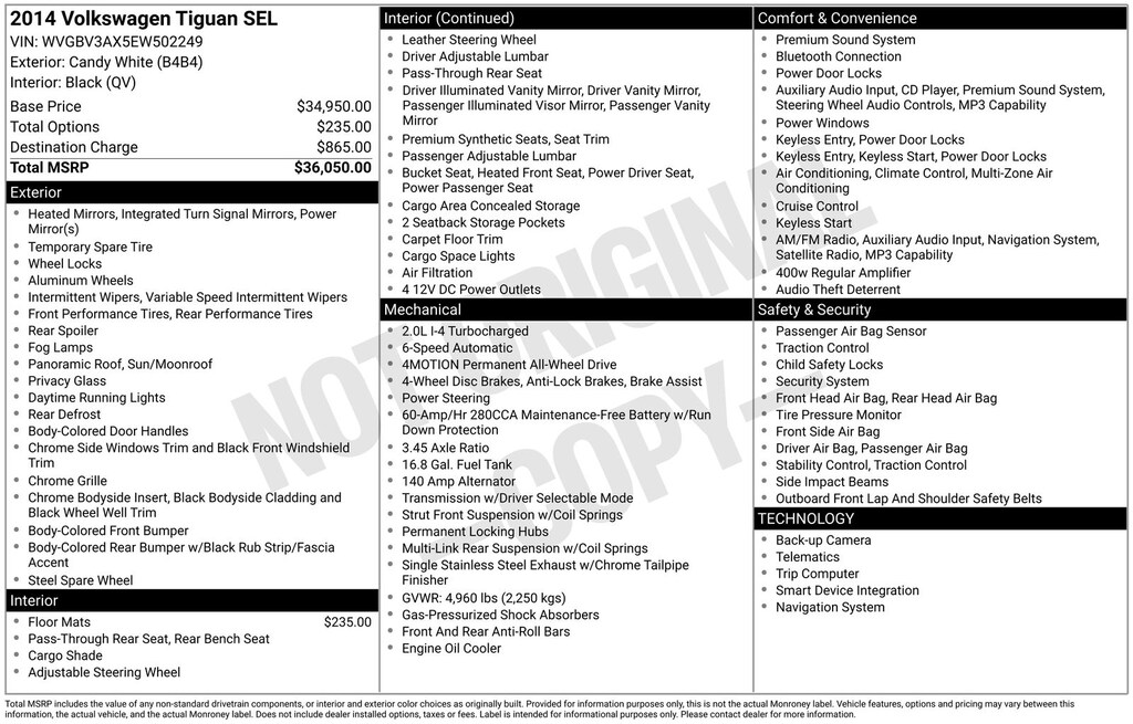 AWD. Candy White 2014 Volkswagen Tiguan SEL 4Motion AWD 6-Speed Automatic with Tiptronic 2.0L TSI